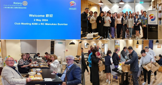 Keeping with the theme of collaborating for impact, RC Manukau Sunrise combined with RC Auckland South at their meeting venue “My Kitchen” 543 Dominion Road this week to enjoy Taiwanese kai, tri-lingual kōrero, fellowship, Rotary business, and hearing from RYPEN speaker Peter Ma.
