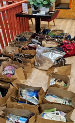 But wait there was MORE, the main event was our combined efforts to complete the Foundation Handbag (filled with essential goodies) Project for Women’s Refuge. As you can see many hands made light work of it!